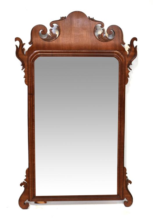 Lot 3 of 1434: Various small items of furniture to include a reproduction walnut veneered bedside chest of three drawers, raised on cabriole supports, a 19th century style fretwork wall mirror, a carved low chair and a nest of four tables (4).
