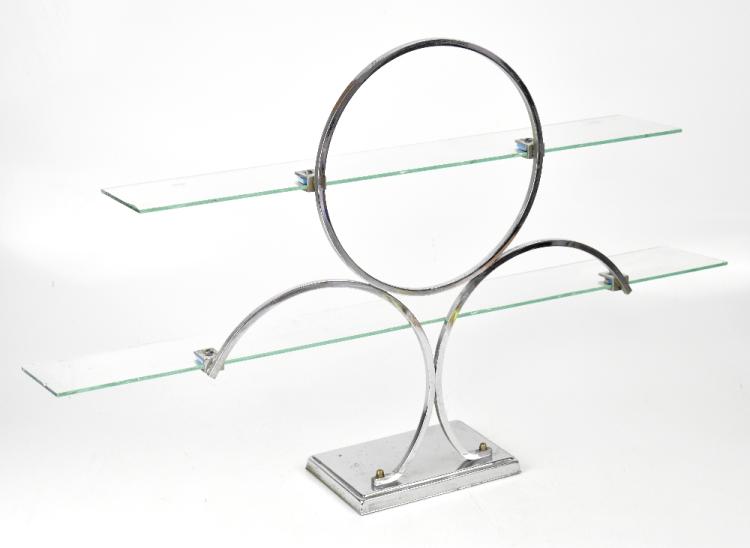 Lot 30 of 1434: An Art Deco chrome and glass twin-shelf wall unit, 50 x 82cm.