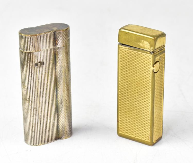 Lot 54 of 1032: DUNHILL; two lighters comprising a yellow metal engine turned example and a similar silvered example, length 6.6cm (2).