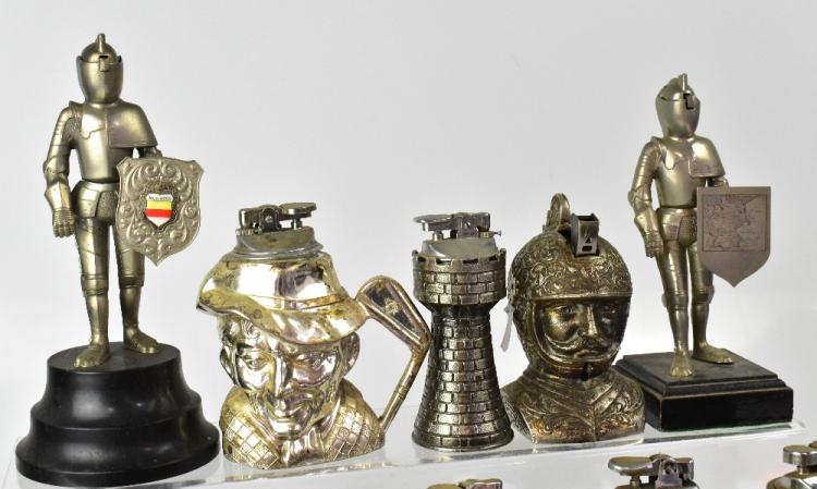 Lot 74 of 1032: Thirty-nine vintage table lighters comprising jasperware, onyx, turned wooden and brass examples, one in the form of a clog, etc (39).
