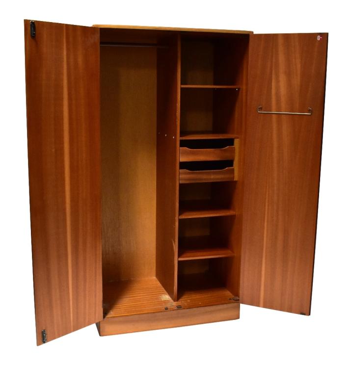 Lot 8 of 1231: G PLAN; a teak Fresco double wardrobe with clothes rail, shelves and drawers, 176 x 92cm