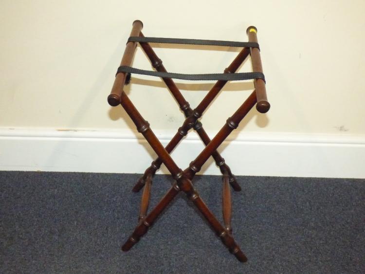Lot 59 of 1231: A mahogany oval tray with raised brass handles on mahogany faux bamboo stand, 55 x 55 cm.