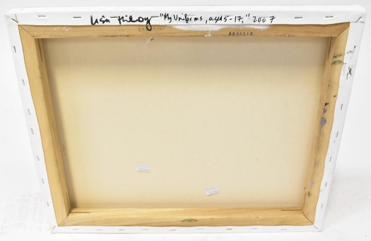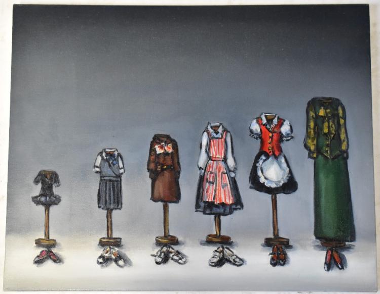 Lot 10 of 104: LISA MILROY; oil on canvas, 'My Uniforms Age 5-17', 40 x 50cm.