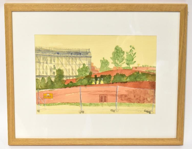 Lot 15 of 104: JULIA MIDGLEY; watercolour and pencil, 'New Liverpool', 44 x 54cm,