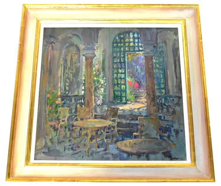 Lot 34 of 104: SUSAN RYDER; oil, 'Moroccan Interior', framed.