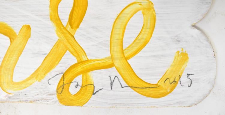 Lot 87 of 104: JONNY HANNAH; oil on board, shop sign 'Heart and Hand Emporium', 190 x 40cm.